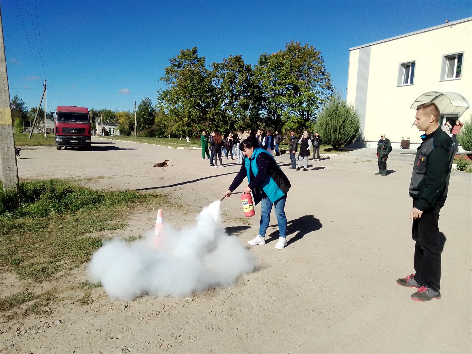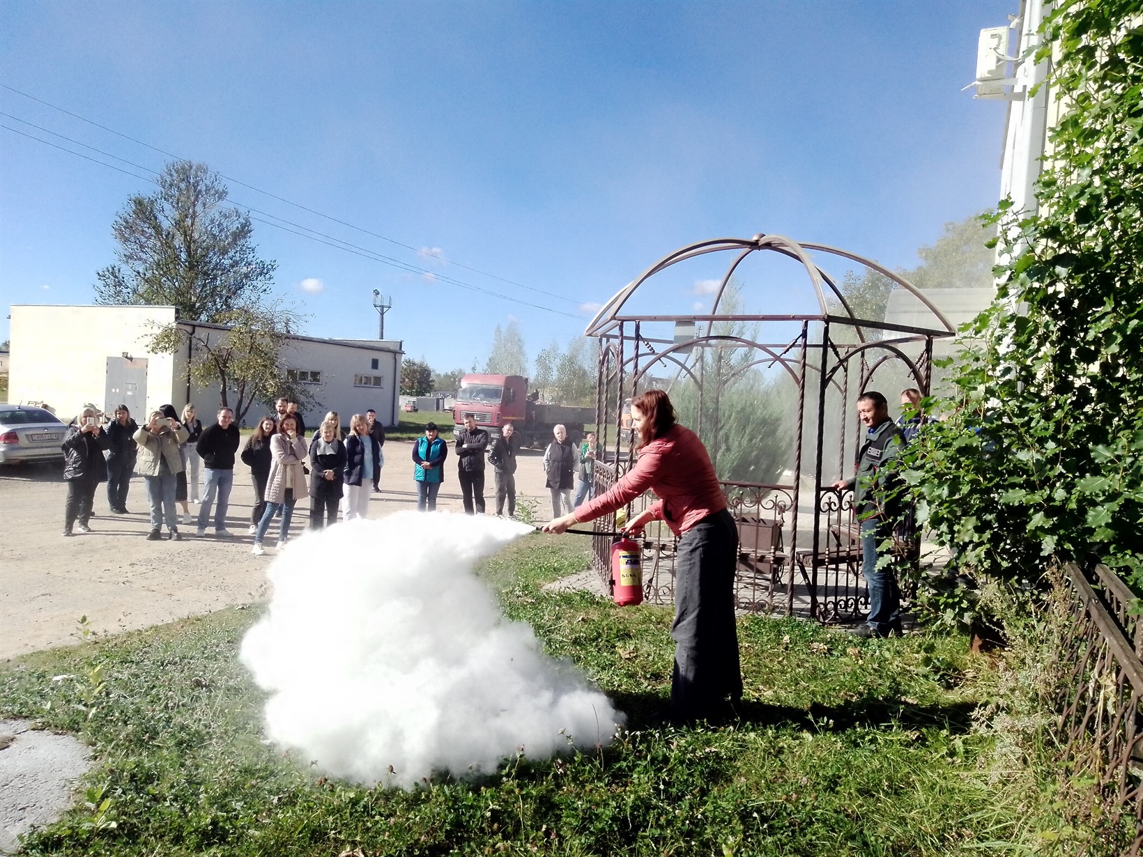 Сотрудники филиала могли потренироваться в использовании огнетушителя.